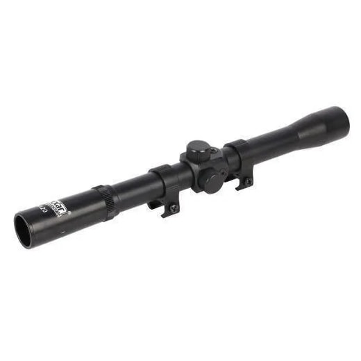 Com 4 aumentos, a primeira com objetiva de 20 mm e campo visual de 20 pés (6,10 metros) a 100 jardas de distância (91,4 metros) e a segunda com objetiva de 32 mm e campo visual de 32 pés (9,75 metros) à mesma distância.